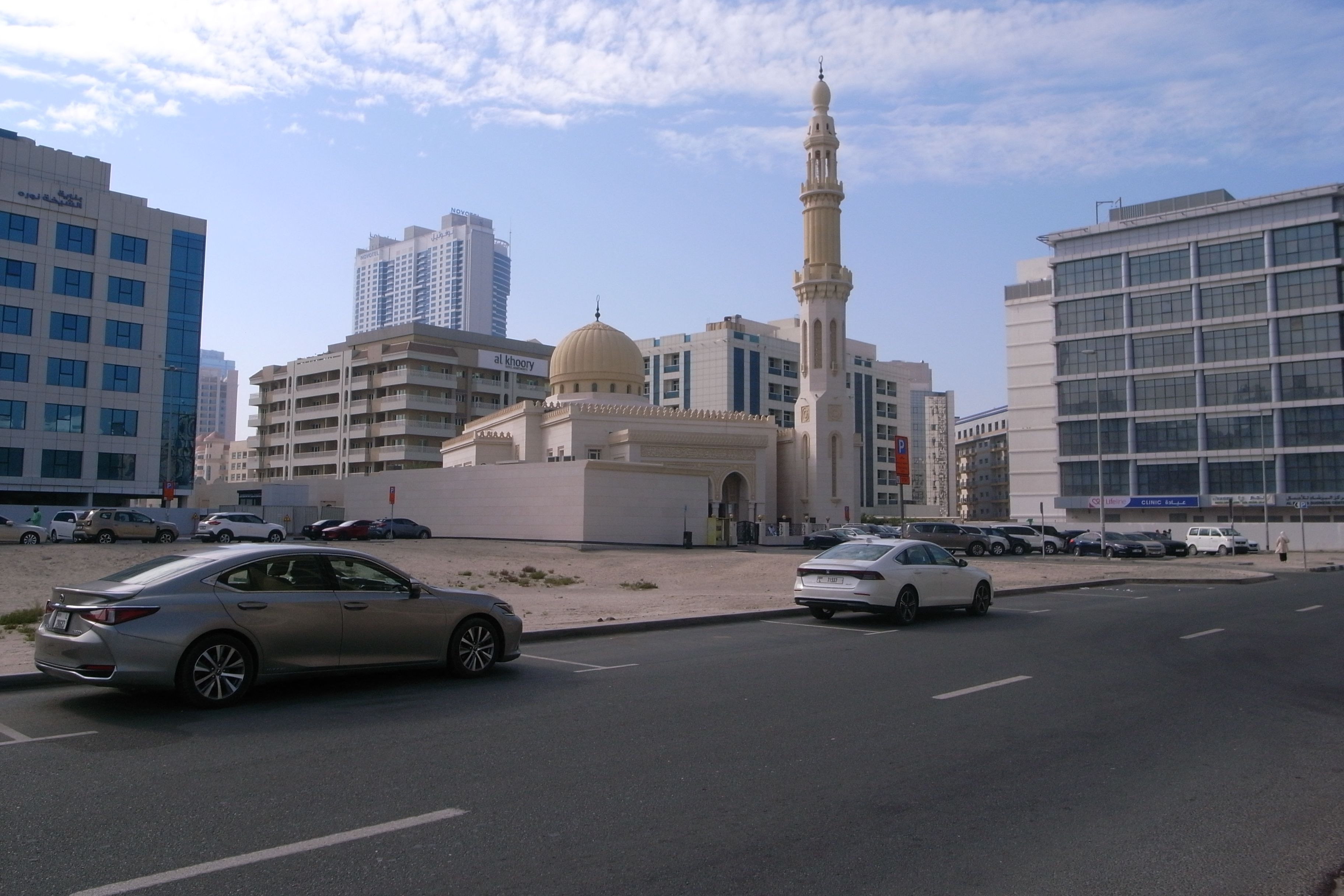 Empty lot with sand in it and a mosque in Al Barsha